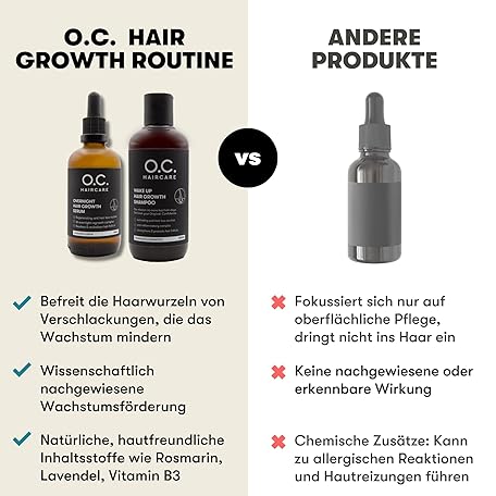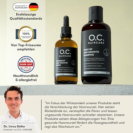 Thông tin sản phẩm O.C. HAIRCARE Wake Up Hair Growth Shampoo – Haarwachstum anregen & Haarausfall reduzieren - Mildes, sulfatfreies Shampoo mit Panthenol & Aloe Vera - Löst Rückstände an der Wurzel & pflegt die Kopfhaut