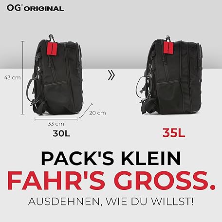 Sản phẩm OG Online&Go CityRunner Motorcycle Backpack, Waterproof, Expandable 30-35 L, Helmet Strap, High Capacity, Laptop Compartment, Reflective, USB, Helmet Bag for Motorcyclists đang được bán với giá ưu đãi là $113.796 tại nước Đức.
