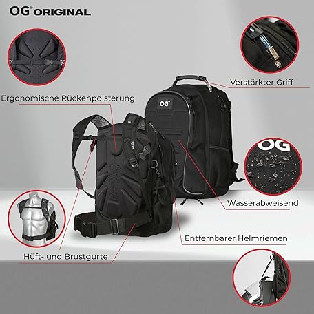 Thông tin sản phẩm OG Online&Go CityRunner Motorcycle Backpack, Waterproof, Expandable 30-35 L, Helmet Strap, High Capacity, Laptop Compartment, Reflective, USB, Helmet Bag for Motorcyclists
