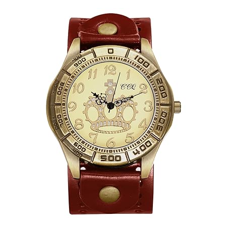 OIDEA Armbanduhr aus echt Leder Vintage: Unisex Rot Leder Band mit Krone Arabischen Zifferblatt Quarz Analog Retro Uhr Geschenk für Damen Herren
