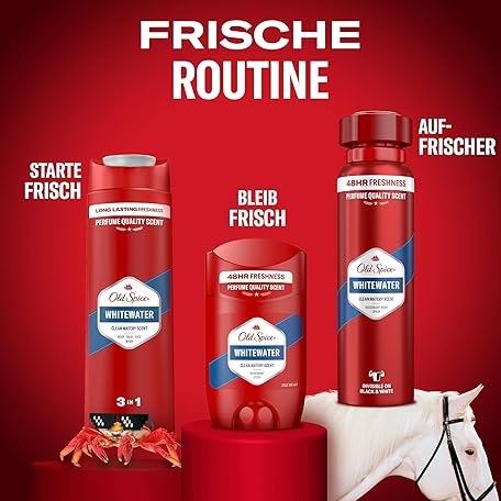 Sản phẩm Old Spice Whitewater Deodorant Body Spray for Men (150ml) Men 48h Freshness 0% Aluminium Salts, No White Residue and Yellow Stains đang được bán với giá ưu đãi là $3.0193 tại nước Đức.