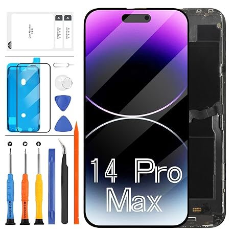 OLED-LCD-Bildschirm für iPhone 14 Pro Max, 17 cm (6,7 Zoll), für iPhone 14 Pro Max A2894, A2651, A2893, A2895, 3D-Touch-LCD-Bildschirm, Digitizer, Montage-Reparatur-Set (schwarz)