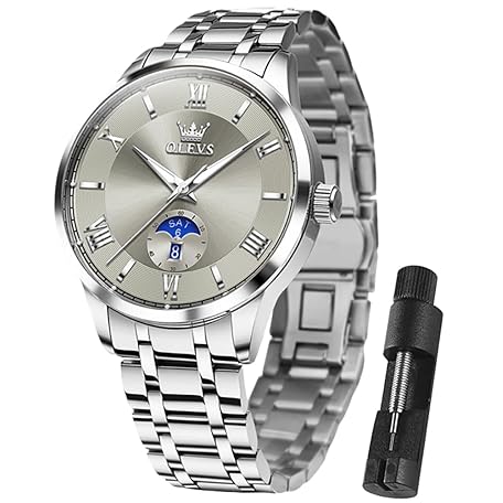 OLEVS Automatic Men's Watch Mechanical Self-Winding Luxury Dress Moon Phase Dial Stainless Steel Waterproof Luminous Wrist Watch