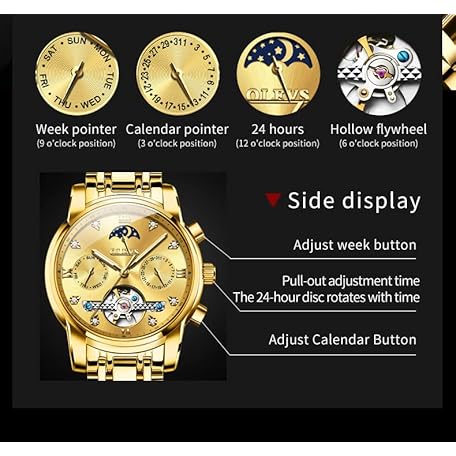 Thông tin sản phẩm OLEVS Automatic Men's Watches, Mechanical Black Watch with Skeletonised Tourbillon, Calendar, Waterproof, Luminous Classic Luxury Wrist Watches for Men