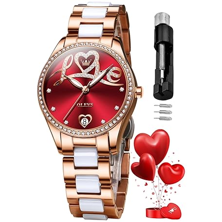 OLEVS Automatic Watches for Women Diamond Fashion Elegant Dress Mechanical Self Winding Date Ladies Watch Luxury Rose Gold Two Tone Ceramic Watch Waterproof Luminous
