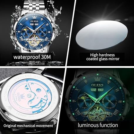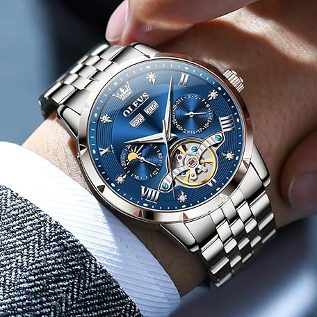 Sản phẩm OLEVS Men's Automatic Watch Skeleton Mechanical Classic Luxury Business Diamond Stainless Steel Waterproof Luminous Date Calendar Wrist Watch for Men đang được bán với giá ưu đãi là $181.5613 tại nước Đức.