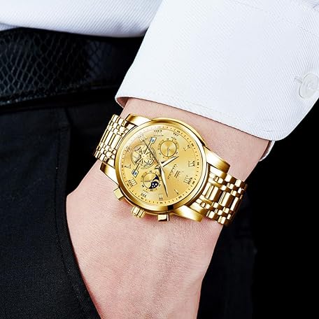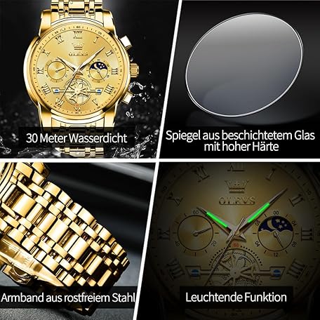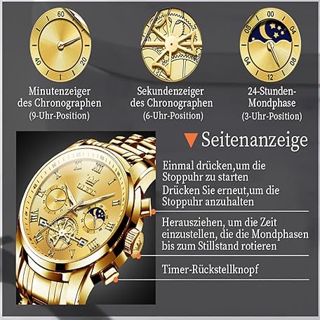 Sản phẩm OLEVS Men's Watches Stainless Steel Bracelet Quartz Watch Men with Roman Numerals Moon Phase Waterproof Luminous Classic Elegant Watch Gift Sale Brands đang được bán với giá ưu đãi là $63.765 tại nước Đức.
