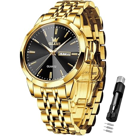 OLEVS Watches Men's Diamond Business Dress Analogue Quartz Stainless Steel Waterproof Luminous Date Two-Tone Luxury Casual Watch Gifts for Men