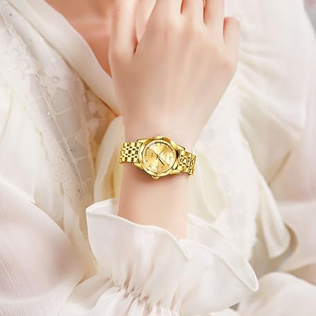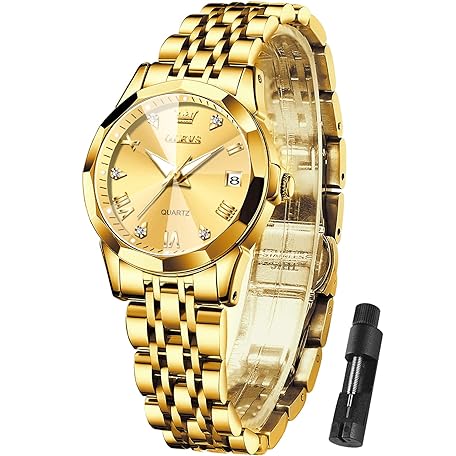OLEVS Women Fashion Diamond Roman Numerals Analog Quartz Stainless Steel Waterproof Luminous Date Female Watch Gift
