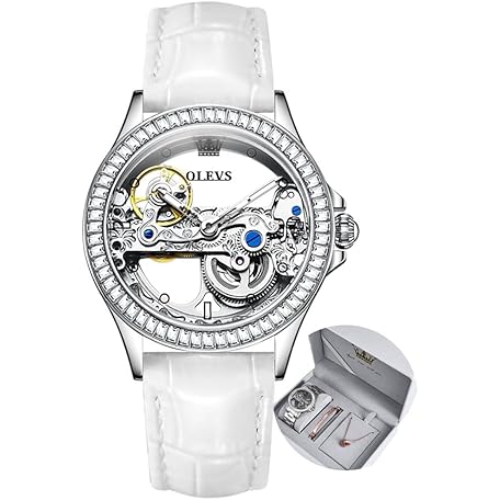 Sản phẩm OLEVS Women Watch Skeleton Set Automatic Mechanical Silver Luxury Dress Waterproof Luminous Lady Watch Gift Set đang được bán với giá ưu đãi là $205.2688 tại nước Đức.