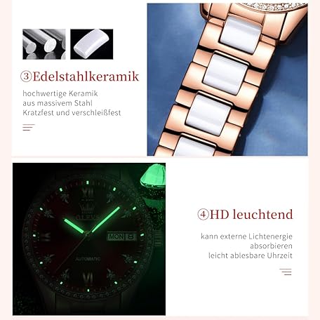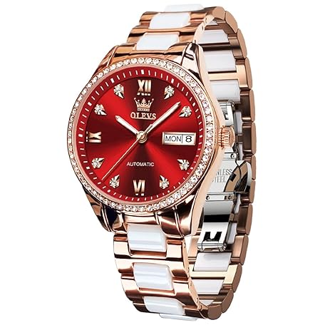 Sản phẩm OLEVS Women's Automatic Watch Diamond Bezel Fashion Waterproof Calendar Two Tone Stainless Steel Ceramic Bracelet đang được bán với giá ưu đãi là $160.9276 tại nước Đức.