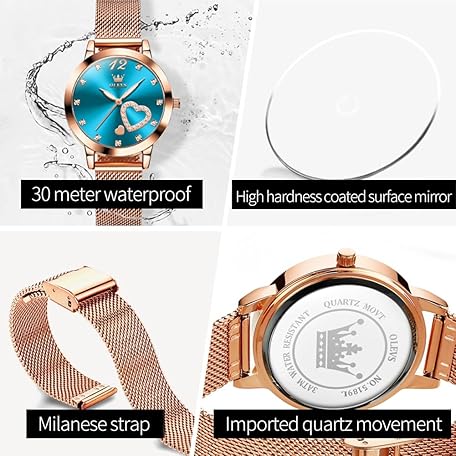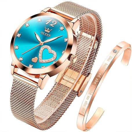 Sản phẩm OLEVS Women's Watch Rose Gold with Heart Diamond Black White Face Quartz Wrist Watch Waterproof Belt Bangle Set đang được bán với giá ưu đãi là $63.8195 tại nước Đức.