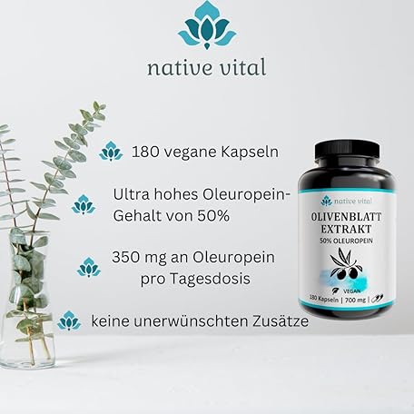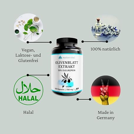 Thương hiệu Native Vital là cái tên nổi tiếng được rất nhiều khách hàng trên thế giới chọn lựa. Với kiểu dáng đẹp mắt, sang trọng, sản phẩm Olive Leaf Extract, 50% Oleuropein, 700 mg per Daily Dose, 180 Capsules, Made in Germany, Vegan, Premium Quality là sự lựa chọn hoàn hảo nếu bạn đang tìm mua một món cho riêng mình.