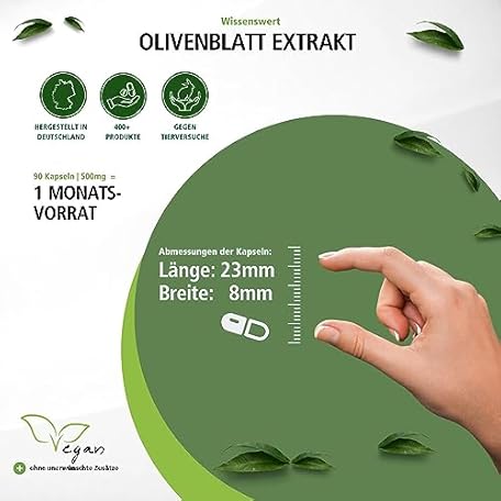 Sản phẩm Olive Leaf Extract 500mg Hochdosiert, Natural, Vegan, Standardized 20% Oleuropein, 90 Capsules, 3 Month Pack đang được bán với giá ưu đãi là $25.3316 tại nước Đức.