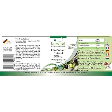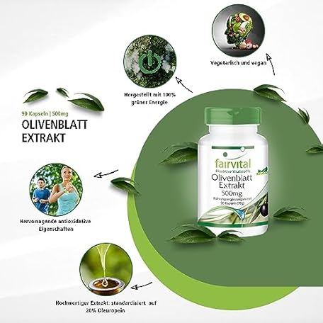 Thương hiệu fairvital là cái tên nổi tiếng được rất nhiều khách hàng trên thế giới chọn lựa. Với kiểu dáng đẹp mắt, sang trọng, sản phẩm Olive Leaf Extract 500mg Hochdosiert, Natural, Vegan, Standardized 20% Oleuropein, 90 Capsules, 3 Month Pack là sự lựa chọn hoàn hảo nếu bạn đang tìm mua một món cho riêng mình.