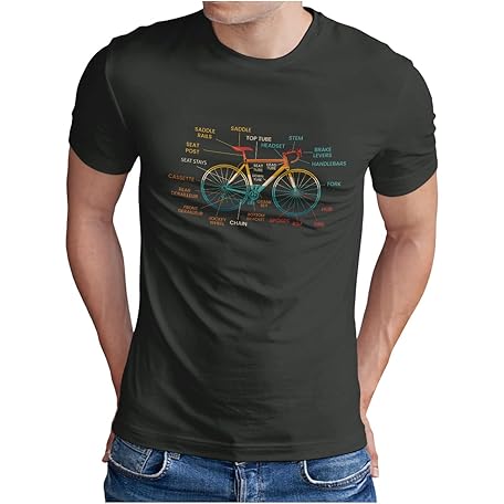 OM3® Bicycle T-Shirt with Parts Names | Men | Bicycle Road Bike Parts Cycling | S - 5XL