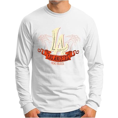 OM3® Los Angeles Langarm Shirt - Herren - Kalifornien California L.A.Palms Paradise - Weiß, 4XL