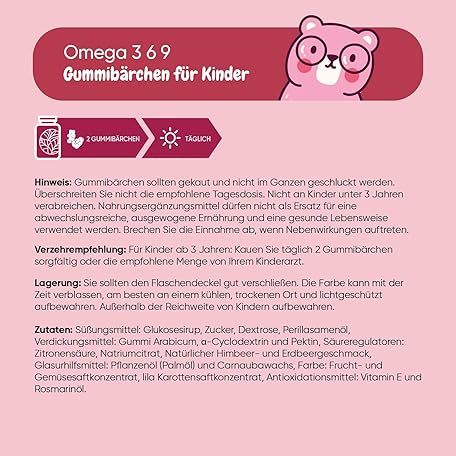 Thông tin sản phẩm Omega 3 6 9 Gummy Bears for Children - 120 Vegan Gummies - 400 mg - Strawberry & Raspberry Flavour - Perilla Oil Provides Omega 3, 6 & 9-2 Months Supply - Gluten Free - Lactose Free - maxmedix