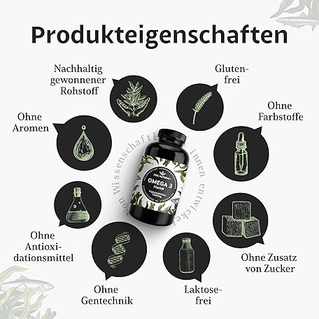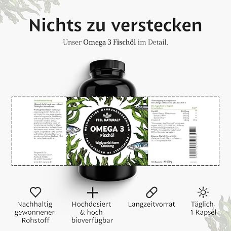 Thông tin sản phẩm Omega 3 Capsules, 365 Pieces, 1000 mg of Fish Oil per Capsule with EPA & DHA, Essential Omega 3 Fatty Acids for 1 Year, High Dose, from Sustainable Fishing, No Unwanted Additives