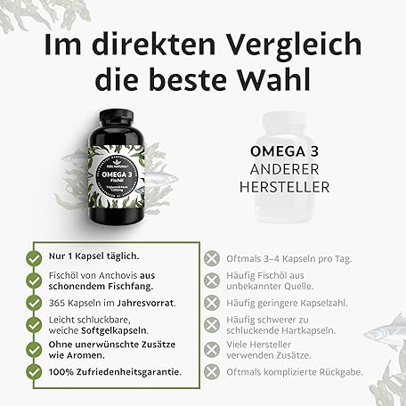 Sản phẩm Omega 3 Capsules, 365 Pieces, 1000 mg of Fish Oil per Capsule with EPA & DHA, Essential Omega 3 Fatty Acids for 1 Year, High Dose, from Sustainable Fishing, No Unwanted Additives đang được bán với giá ưu đãi là $33.1251 tại nước Đức.