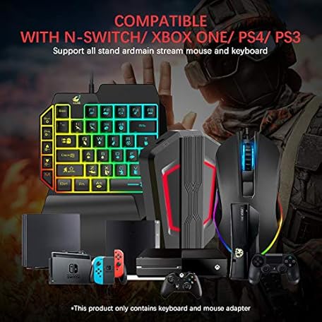 Sản phẩm One-Hand Wired Mechanical Feel Keyboard with Backlight + RGB Gaming Mouse + LED Converter with Backlight for Nintendo Switch / Xbox One / Xbox 360 / PS4 / PS3 / PC (Black) đang được bán với giá ưu đãi là $58.5221 tại nước Đức.