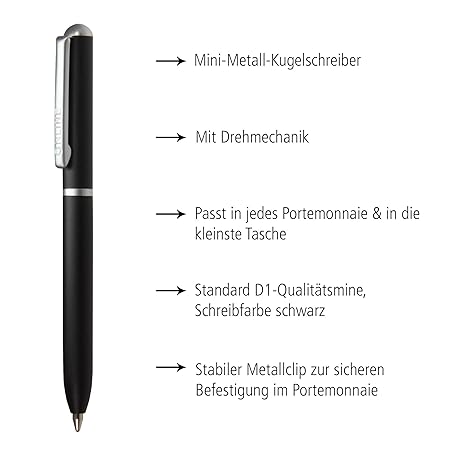 Online Miniature Twist Ballpoint Pen Black with Metal Clip, D1 Standard Refill, Mini Ballpoint Pen for Wallet, 8 cm Length, Suitable for Wallets and Small Bags for Travel, Ink Colour Blue