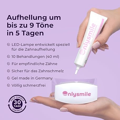 Sản phẩm Onlysmile Zahnbleaching Set professionell | Testsieger 2024-2025 | All in One Teeth Whitening Kit für Weiße Zähne mit sofort Effekt | Sichere Zahnaufhellung Bleaching Zähne aufhellen | Zahn bleach set đang được bán với giá ưu đãi là $86.9166 tại nước Đức.