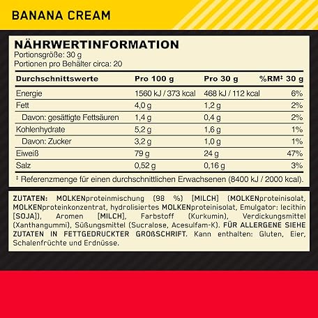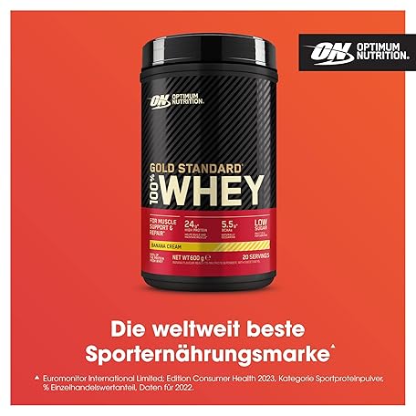 Sản phẩm Optimum Nutrition Gold Standard 100% Whey Protein Powder for Muscle Building and Regeneration with Naturally Occurring Glutamine and BCAA Amino Acids, Banana Cream, 20 Servings, 600g đang được bán với giá ưu đãi là $31.8825 tại nước Đức.