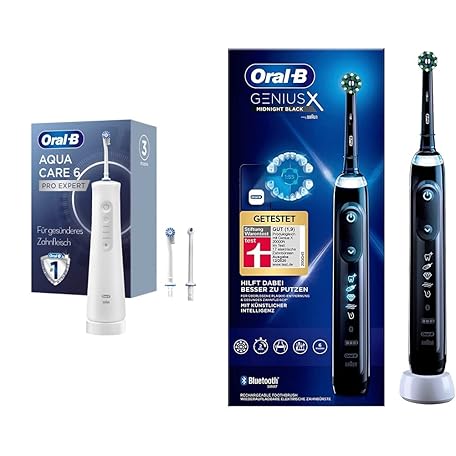 Thông tin sản phẩm Oral-B AquaCare 6 Wireless Oral Irrigator, 3 Replacement Nozzles, White/Grey & Genius X Electric Toothbrush, 6 Cleaning Modes for Dental Care, Artificial Intelligence & Bluetooth App, Black