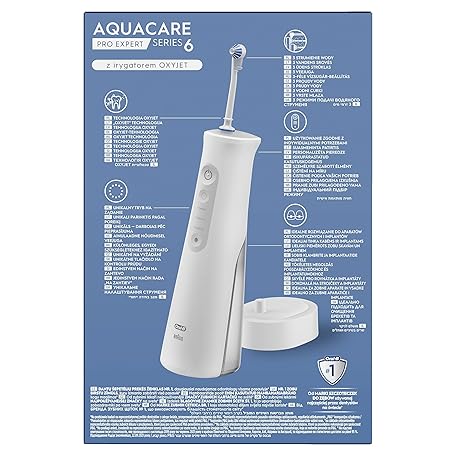 Thông tin sản phẩm Oral-B AquaCare Pro-Expert Series 6 Irrigator with Oxyjet Technology, 3 Finials, 2 Types of Water Jets, White