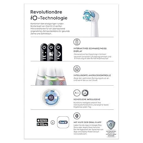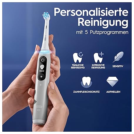 Sản phẩm Oral-B iO Series 6 Electric Toothbrush, 2 Replacement Brushes, 5 Cleaning Modes for Dental Care, Valentine's Day Gift for Him/Her, Display & Travel Case, Designed by Braun, Grey Opal đang được bán với giá ưu đãi là $125.2083 tại nước Đức.