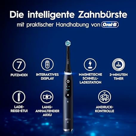 Thông tin sản phẩm Oral-B iO Series 9 Luxe Edition Electric Toothbrush, 7 Cleaning Modes for Dental Care, Magnetic Technology & 3D Analysis, Colour Display, Charging Travel Case & Beauty Bag, Black Onyx