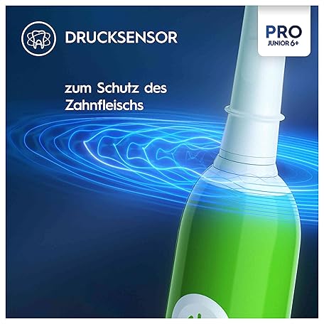 Thông tin sản phẩm Oral-B Pro Junior Children's Electric Toothbrush - Electric Toothbrush for Children from 6 Years, Includes Soft Bristles, Pressure Sensor & Timer and 3 Cleaning Modes Sensitive for Dental Care