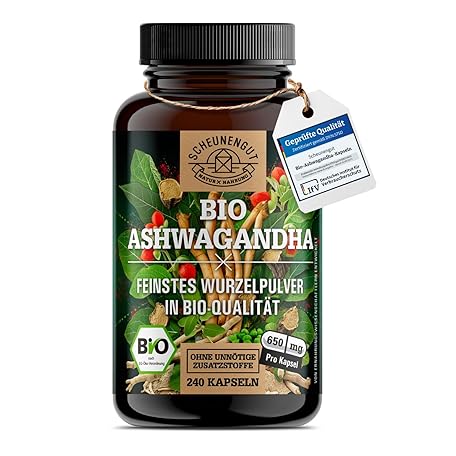 Organic Ashwagandha 1950 mg per day – Important: Certified Organic Ashwaganda + Withanolide High Dose – 240 Ashwagandha Capsules High Dose Laboratory Tested and Vegan I DE SCHEUNENGUT®