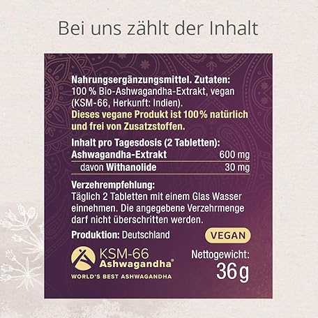 Sản phẩm Organic Ashwagandha Extract, Premium Raw Material KSM-66-120 Tablets, with 600 mg Ashwagandha Organic, of which 5% Withanolide, Enough for 60 Days đang được bán với giá ưu đãi là $22.7265 tại nước Đức.