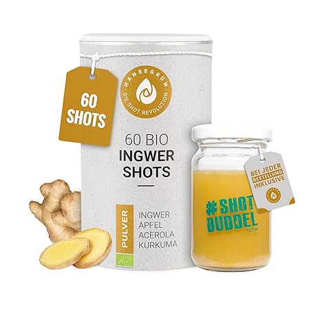 Organic Ginger Turmeric Shots (Pack of 60) - Vegan Superfood Powder for Immune System¹ & Energy Metabolism³ - Turmeric, Lemon Peel & Acerola - 100% Real Ingredients for Daily Preparation
