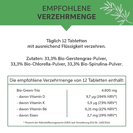 Sản phẩm Organic Green Trio Pellets 500 g | 1250 Tablets with 1/3 Chlorella Spirulina Barley Grass | Raw Food Tablets 400 mg per Tab | 100% Pure and No Additives đang được bán với giá ưu đãi là $28.667 tại nước Đức.