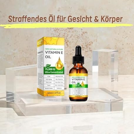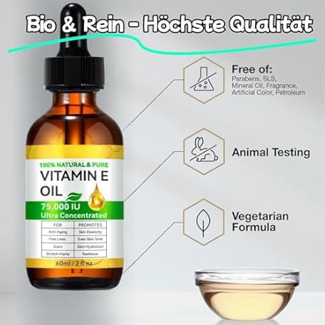 Sản phẩm Organic Vitamin E Oil for Cosmetics 75,000 IU - Pure Vitamin E Oil for Skin Moisturising & Skin Firming, Reduces Fine Lines & Scars, Easily Absorbed Body Oil 60 ml đang được bán với giá ưu đãi là $10.1479 tại nước Đức.