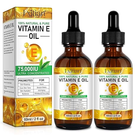 Organic Vitamin E Oil for Cosmetics, Vitamin E Drops, 75,000 IU, 100% Pure Natural Vitamin E Oil for Skin, Fights Scars, Wrinkles and Stretch Marks, Reduces Fine Lines and Tightens the Skin