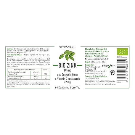 Sản phẩm Organic Zinc 10 mg from Guava Leaf Extract + Natural Vitamin C 32 mg from Acerola Extract Dietary Supplement đang được bán với giá ưu đãi là $30.5636 tại nước Đức.