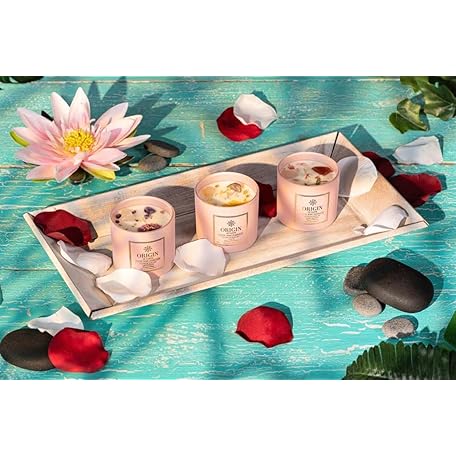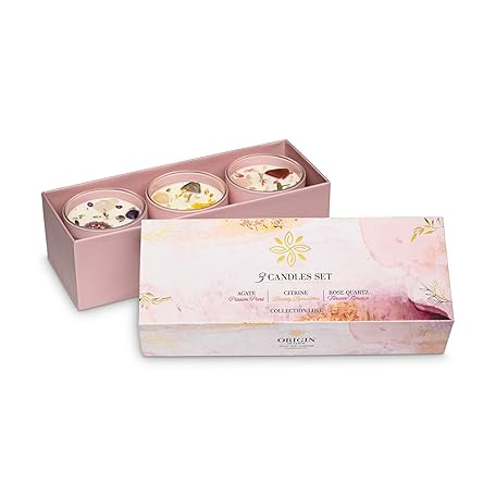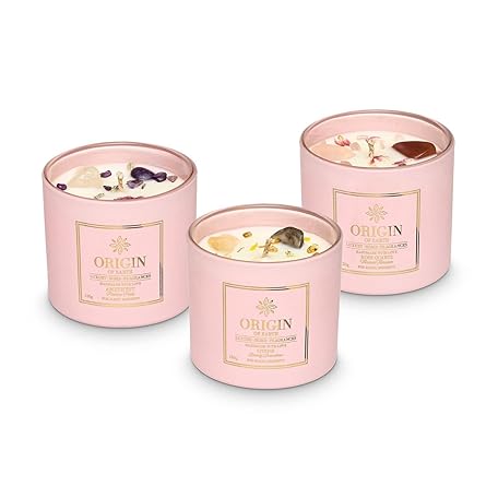 Sản phẩm ORIGIN OF EARTH Scented Candles in Glass (Set of 3) 360 g, Collection Love Candle with Crystals and Gemstone, Natural Soy Wax Candle, 60 Hours Burning Time, with Sweet Fresh Fragrances đang được bán với giá ưu đãi là $46.9899 tại nước Đức.