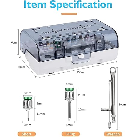 Thông tin sản phẩm ORILAO Universelles Implantat-Prothesen-Set, buntes Prothesenwerkzeug, 10–70 Ncm, Implantat-Treiber mit 16 Schraubendrehern