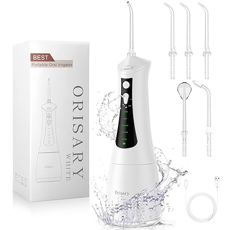 Thông tin sản phẩm Orisary Oral Irrigator, Wireless Electric Tooth Cleaner, 5 Modes & 5 Nozzles, 300 ml Water Tank, Rechargeable Dental Irrigator, Double Water Teeth Flosser, IPX7 Waterproof for Cleaning when Travelling