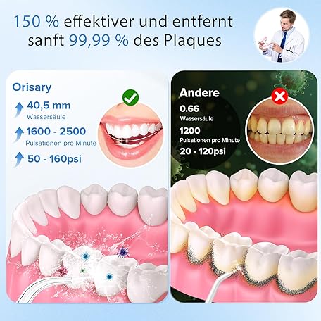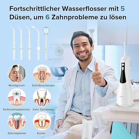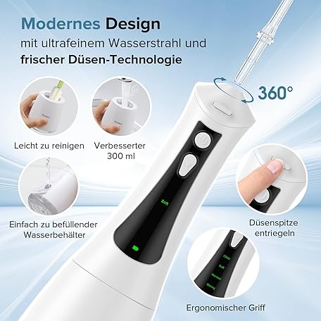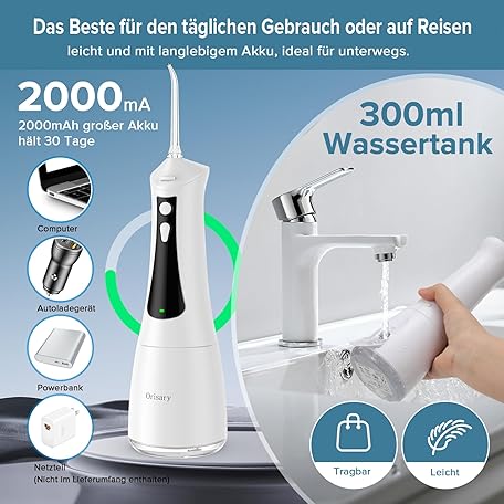 Sản phẩm Orisary Oral Irrigator, Wireless Electric Tooth Cleaner, 5 Modes & 5 Nozzles, 300 ml Water Tank, Rechargeable Dental Irrigator, Double Water Teeth Flosser, IPX7 Waterproof for Cleaning when Travelling đang được bán với giá ưu đãi là $39.1746 tại nước Đức.