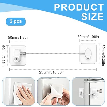 Thông tin sản phẩm OUDQFCJ Pack of 2 Fridge Lock with Key Child Lock Cabinet Washing Machine Lock Lock for Children Toilet Lock for Fridges, Cupboards, Wardrobes (White)