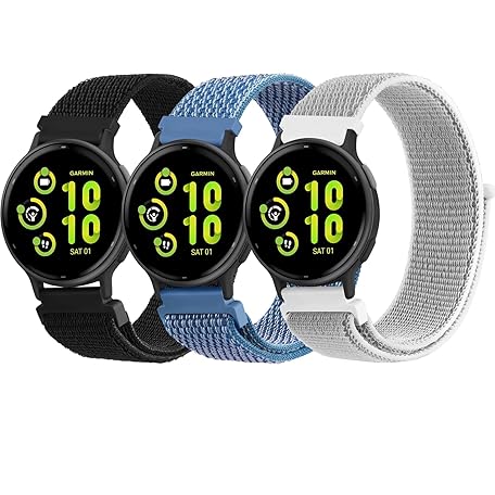 • Oumida Armband für Garmin Vivoactive 6 5 3, Garmin Venu Sq/Venu Sq 2 / Venu 2 Plus, Forerunner 55/165 / 245/645, Atmungsaktives Nylon Uhrenarmbänder, Verstellbares Sport Ersatzband