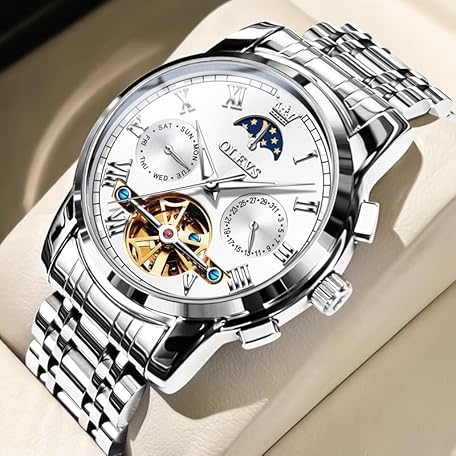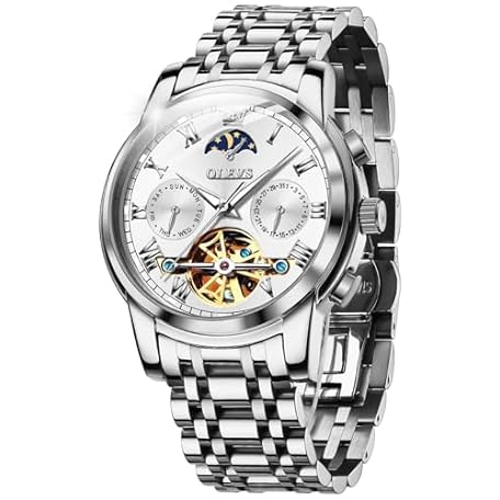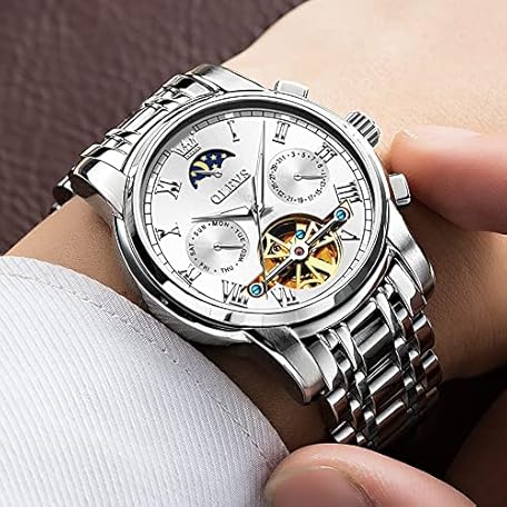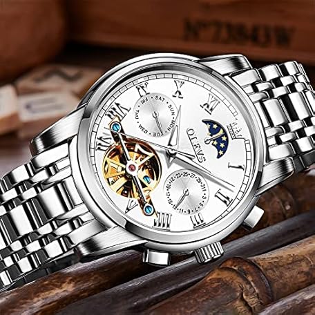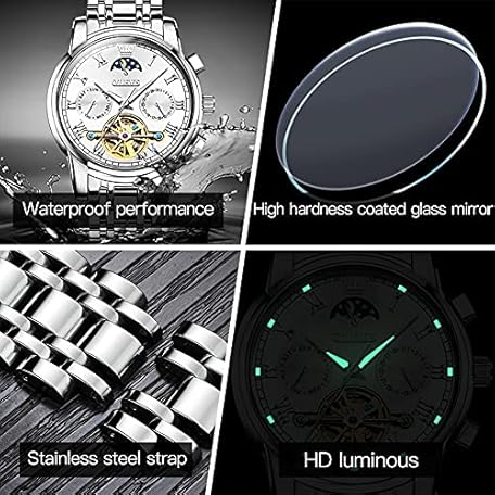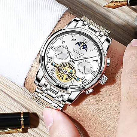 Sản phẩm OUPINKE Men's Automatic Luxury Skeleton Mechanism with Moon Phase Tourbillon Day Date Waterproof Luminous Stainless Steel Strap đang được bán với giá ưu đãi là $200.2112 tại nước Đức.