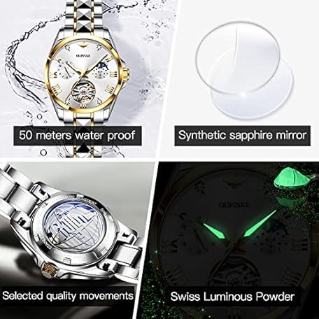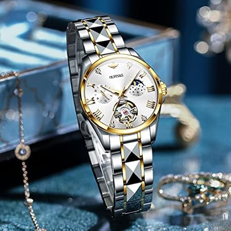 Sản phẩm OUPINKE Womens Watches Automatic Luxury Rose Gold Watches Mechanical Moon Phase Tungsten Steel Crystal Skeleton Waterproof Luminous Women Watch đang được bán với giá ưu đãi là $260.2811 tại nước Đức.