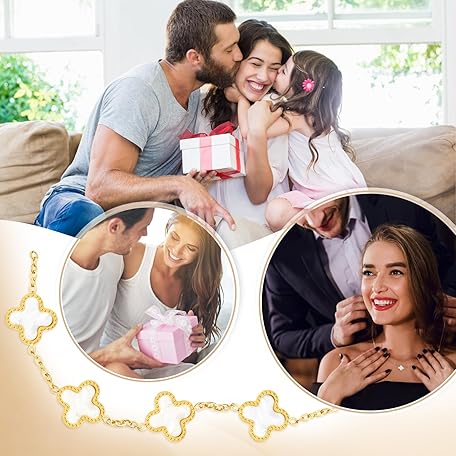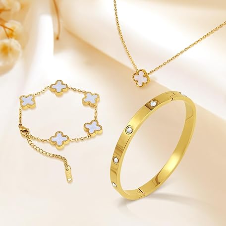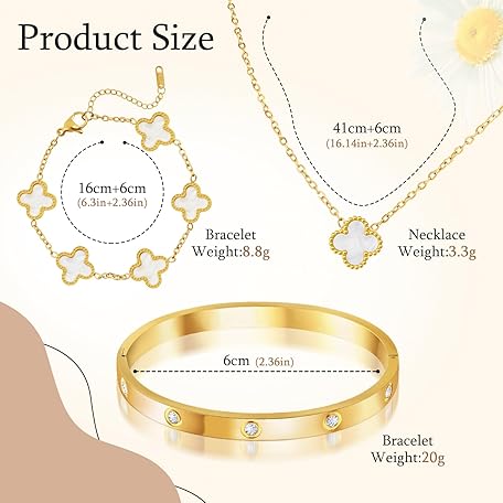Thông tin sản phẩm Ouxayapl 18K Vergoldet Vierblättriges Kleeblatt Armband, 18K Vergoldet Vierblättriges Kleeblatt Anhänger Halskette, Gold Armband Cubic Zirkonia Armreif, 3 PCS Schmuck Set für Geschenke Geburtstags