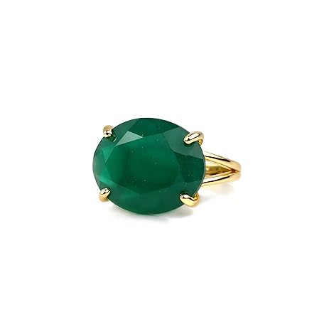 Oval Gold Rings for Women - Green Onyx in 14k Gold Cocktail Jewellery - Ring for Parties, Weddings and Casual Wear - Free Jewellery Box
